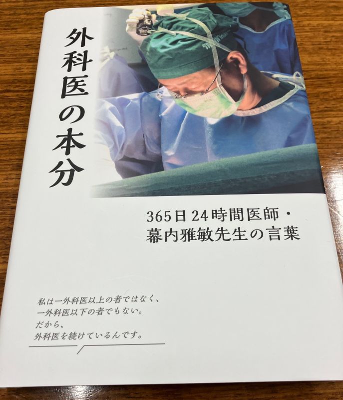 この本は幕内雅敏先生の教え子の皆さんが出費し、寄稿するなどしてまとめたもので、第1部は先生が言われた言葉、第2部に先生の文・インタビュー、第3部が先生の随筆、第4部に教え子の皆さんからの寄稿、第5部に先生のご兄弟からの寄稿という構成になっています。先生のまわりの医師の皆さんにとって、非常に貴重な作品になっていると、私自身、たいへん感銘を受けました。