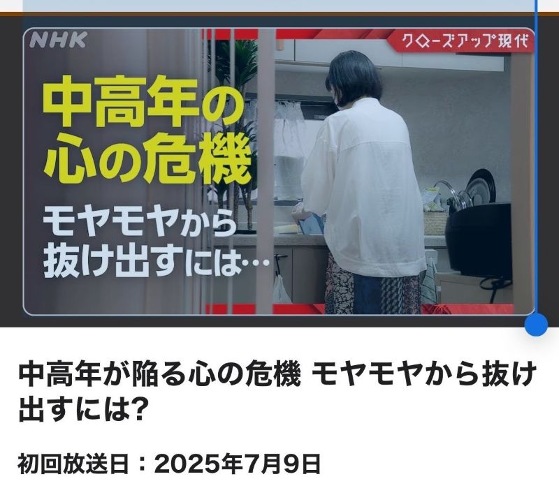 中高年が陥る心の危機 モヤモヤから抜け出すには? - クローズアップ現代 - NHK